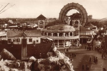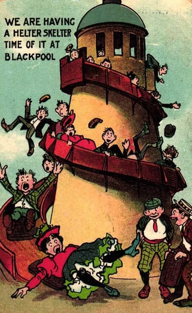 The first recorded Helter Skelter slide was that built on South Shore Blackpool in 1905 during the early development of funfair rides. Its inception around the turn of the 20th century marked a significant evolution in amusement attractions, with early versions built in many amusement parks and on seaside Piers.