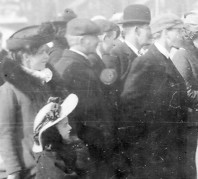 No publisher named, so probably a local photographer, hence very likely one of few originals. It is a very rare survivor, capturing the essence of a moment from 1904 which shows people waiting to consult one of the Gypsy Fortune Tellers. Although the camera was awkwardly placed, we can see that then, as now, folk find this practice fascinating. The crowd are intent on seeing as much as possible, craning their necks to see what is going on. A man wearing a magnificent hat is having his palm read, watching the Fortune Teller intently. a child and her mother, towards the back of the crowd are transfixed, their expressions almost identical. A lady on the bench where people sit and wait looks on almost mesmerised. I just had to buy this card - why? Just look at the detailed scans...
