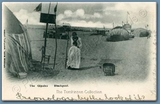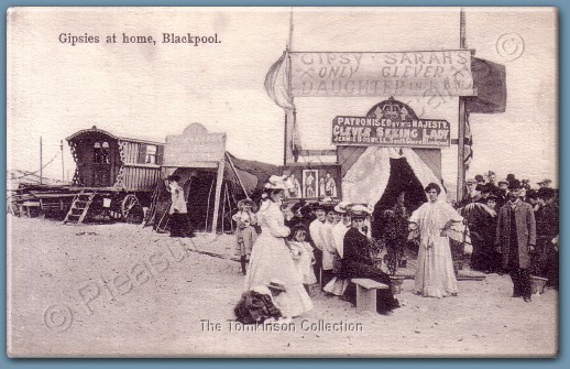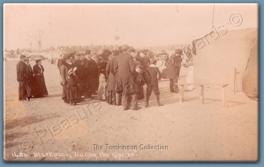 Every now and again though, you realise that you have found something very rare indeed. This card, which bears the legend '1480 Blackpool "Visiting the Gypsies"' gave us one such moment.