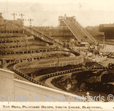 Seen from above (the narrator is speaking as the Wonder Wheel) It is worth noting how open the ride was and also that it ascended on the left, and entered the station from the right - the reverse of our Blackpool example!